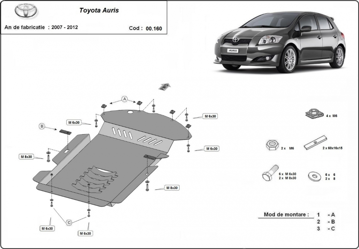 La piastra paramotore di Acciaio è nuova e si adatta perfettamente a tutte le versioni di Toyota Auris prodotte tra il 2007 e il 2012. É fatto di lamiera d'Acciaio di 2mm. Bulloni, dadi, rondelle e tutti gli accessori allegati Ogni piastra è resistente alla corrosione ed è ricoperto di vernice in polvere. Le piastre di protezione del motore sono attrezzati di coppie saldate per la miglior resistenza alle forze exteriori. |
