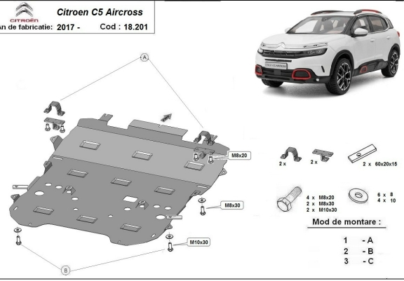 Piastra paramotore di acciaio Citroen C5 Aircross (2017-2026)