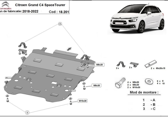 La piastra paramotore di Acciaio è nuova e si adatta perfettamente a tutte le versioni di Citroen Grand C4 SpaceTourer prodotte tra il 2018 e il 2020. É fatto di lamiera d'Acciaio di 2mm. Bulloni, dadi, rondelle e tutti gli accessori allegati Ogni piastra è resistente alla corrosione ed è ricoperto di vernice in polvere. Le piastre di protezione del motore sono attrezzati di coppie saldate per la miglior resistenza alle forze exteriori. |