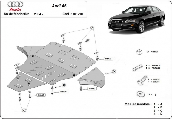 Piastra paramotore di acciaio Audi A6 con alette laterali