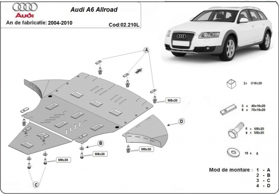 Piastra paramotore di acciaio Audi A6 Allroad 2 - avec latéraux