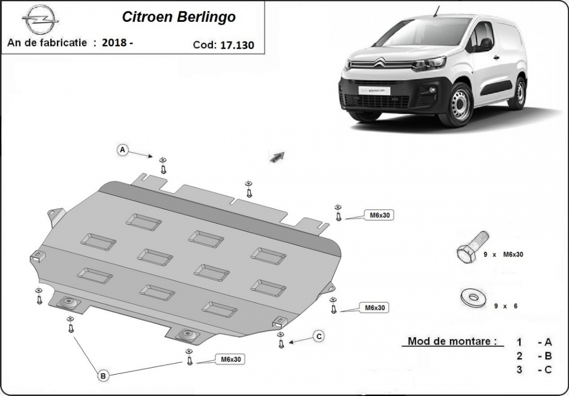 Piastra paramotore di acciaio Citroen Berlingo