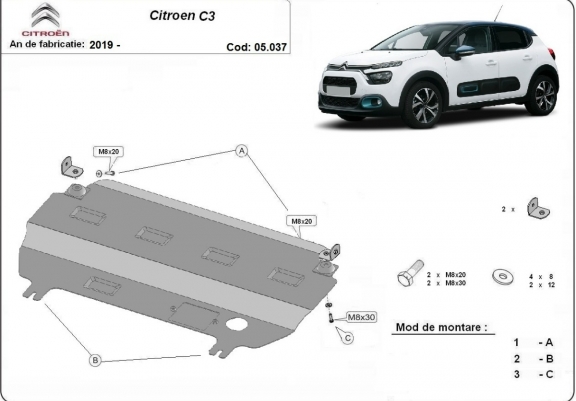 Piastra paramotore di acciaio Citroen C3 (2019-2026)