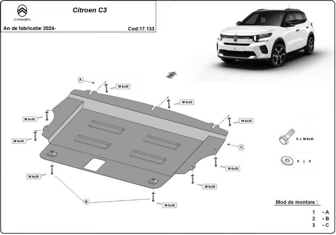 Piastra paramotore di acciaio Citroen C3 (2024-2026)