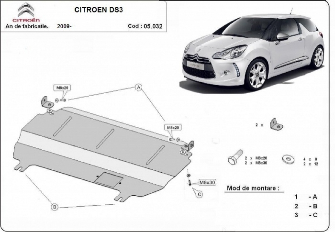 Piastra paramotore di acciaio Citroen DS3 (2009-2026)