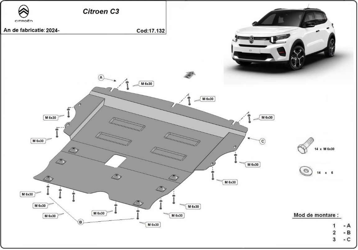 Piastra paramotore di acciaio Citroen C3 (2024-2026)