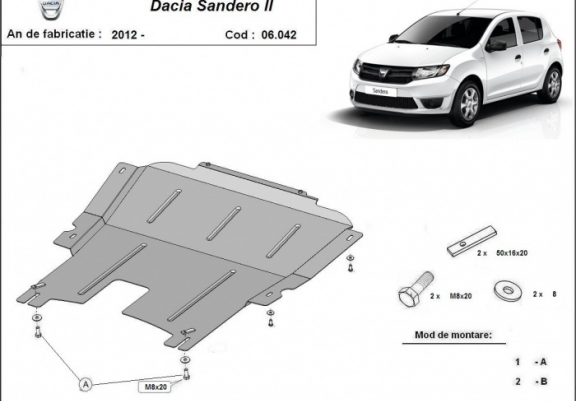 Piastra paramotore di acciaio Dacia Sandero 2