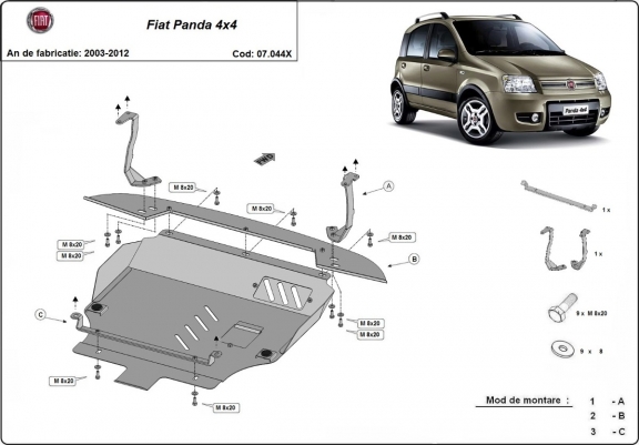 Piastra paramotore di acciaio Fiat Panda 4x4 (2003-2012)