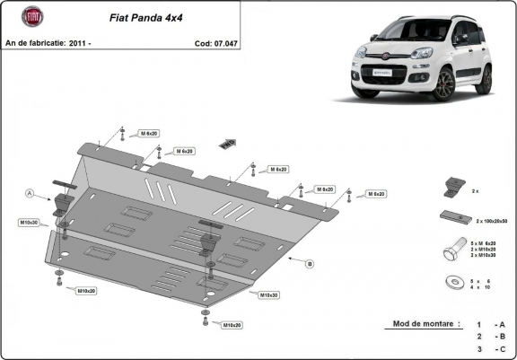 Piastra paramotore di acciaio Fiat Panda 4x4 (2011-2026)