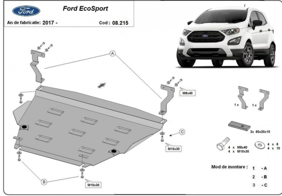 Piastra paramotore di acciaio Ford EcoSport (2017-2026)