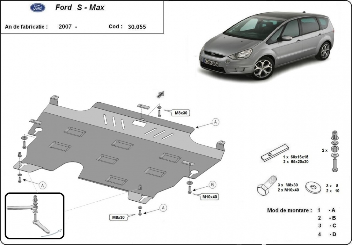 Piastra paramotore di acciaio Ford S-Max (2006-2015)