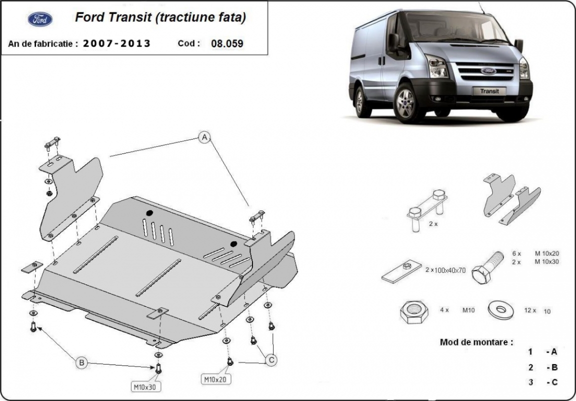 Piastra paramotore di acciaio Ford Transit - FWD