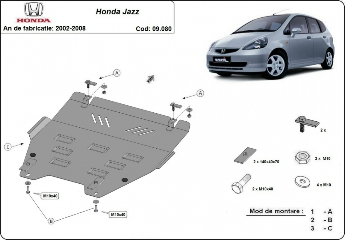Piastra paramotore di acciaio Honda Jazz (2002-2008)