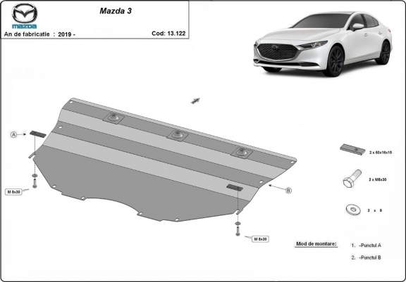 Piastra paramotore di acciaio Mazda 3 (2019-2026)