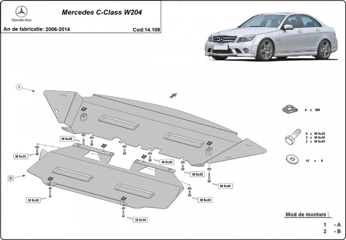 Piastra paramotore di acciaio Mercedes C-Class W204 (2006-2014)