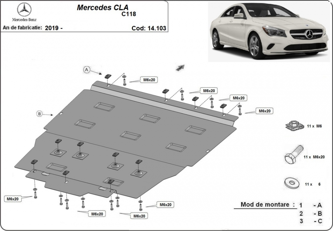 Piastra paramotore di acciaio Mercedes CLA C118 (2019-2026)