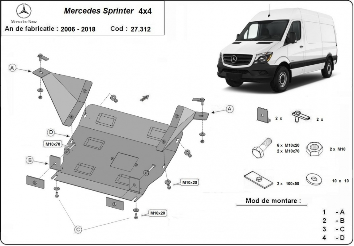 Piastra paramotore di acciaio Mercedes Sprinter 906 4x4