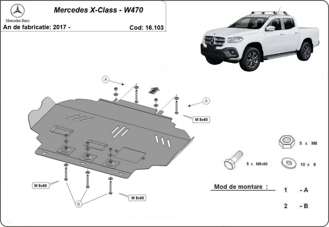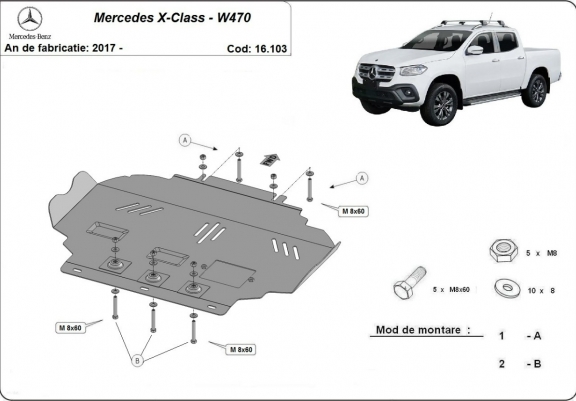 Piastra paramotore di acciaio Mercedes X-Class W470 (2017-2020)
