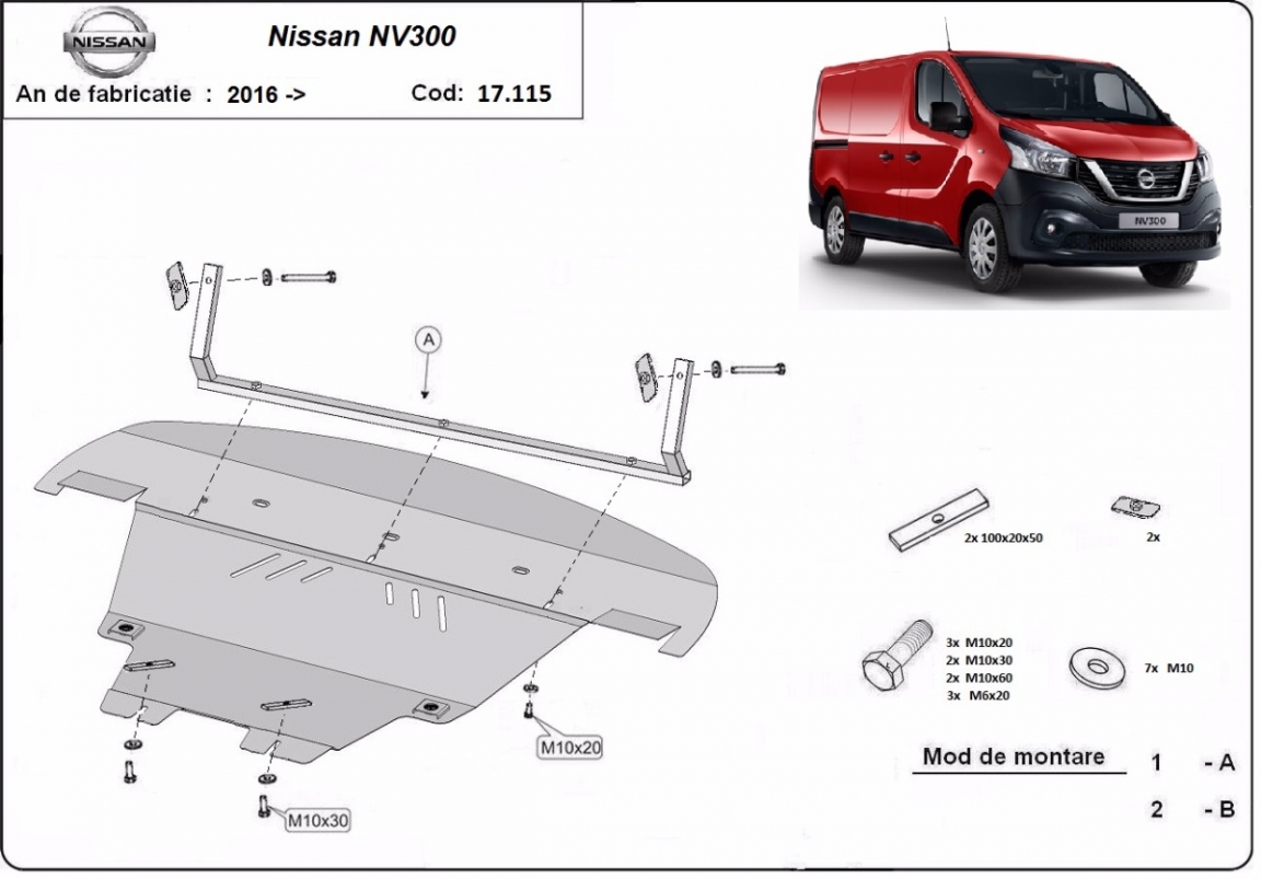 La piastra paramotore di Acciaio è nuova e si adatta perfettamente a tutte le versioni di Nissan NV300 prodotte tra il 2014 e il 2021. É fatto di lamiera d'Acciaio di 2mm. Bulloni, dadi, rondelle e tutti gli accessori allegati Ogni piastra è resistente alla corrosione ed è ricoperto di vernice in polvere. Le piastre di protezione del motore sono attrezzati di coppie saldate per la miglior resistenza alle forze exteriori. |