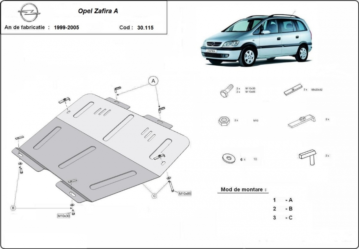 Piastra paramotore di acciaio Opel Zafira A (1999-2005)