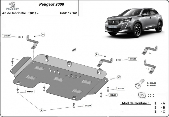 Piastra paramotore di acciaio Peugeot 2008 (2019-2026)