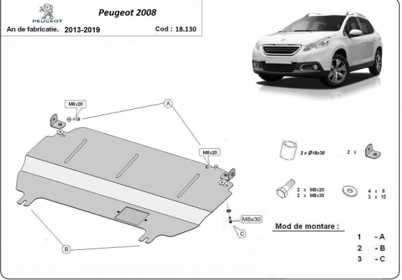 Piastra paramotore di acciaio Peugeot 2008 (2013-2019)