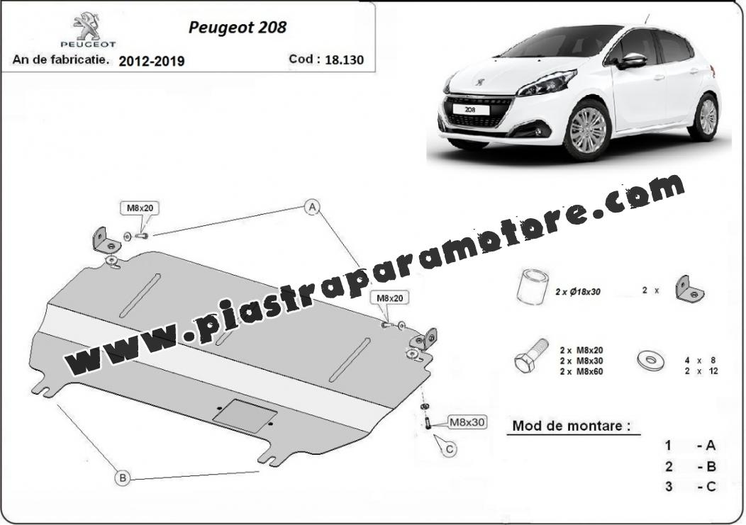 Piastra paramotore di acciaio Peugeot 208 (2012-2019)