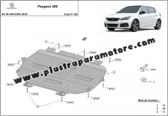 Piastra paramotore di acciaio Peugeot 308 (2018-2026)