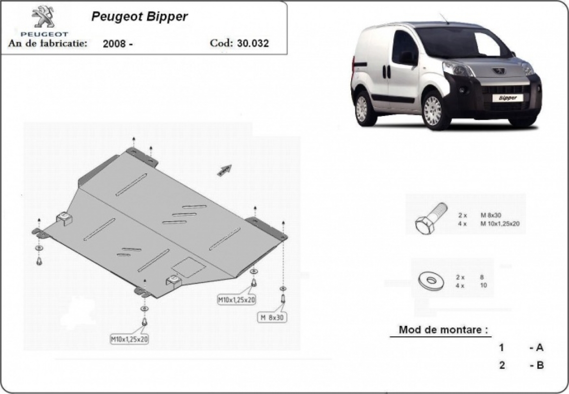 Piastra paramotore di acciaio Peugeot Bipper (2007-2021)