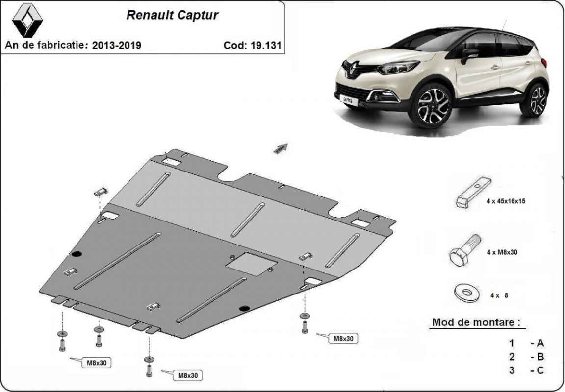 Piastra paramotore di acciaio Renault Captur (2013-2019)