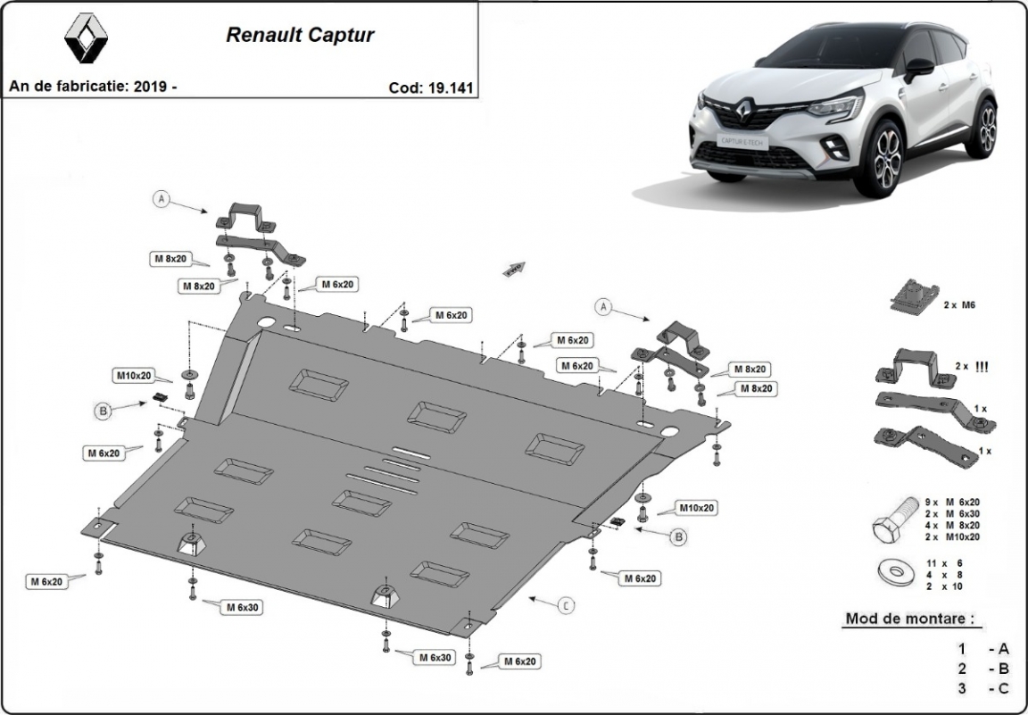 Piastra paramotore di acciaio Renault Captur (2019-2026)