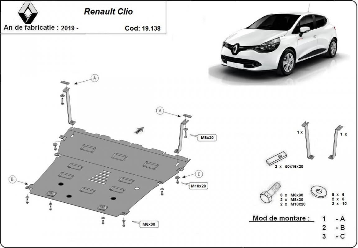 Piastra paramotore di acciaio Renault Clio 5 (2019-2026)