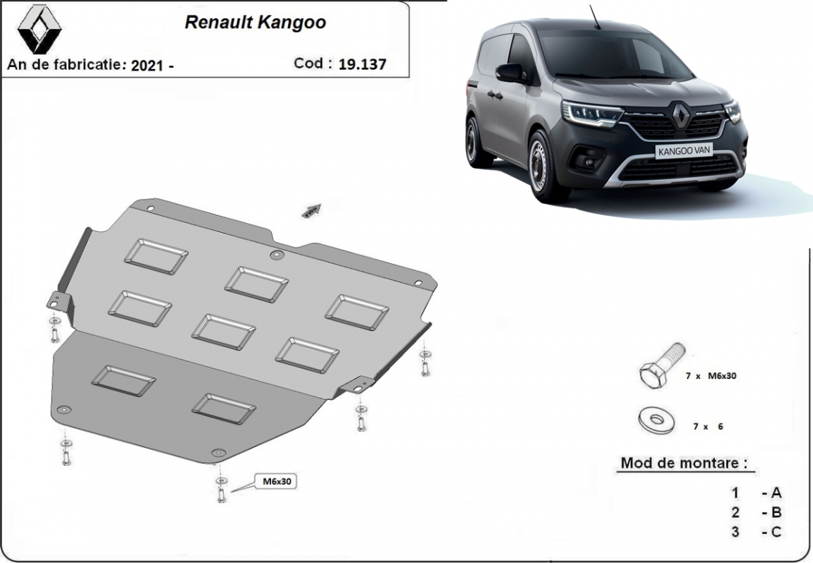Piastra paramotore di acciaio Renault Kangoo Van (2021-2026)