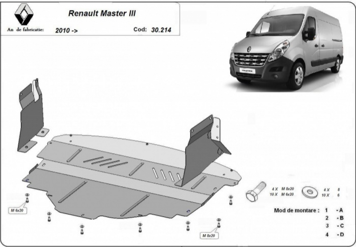 Piastra paramotore di acciaio Renault Master 3
