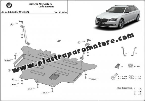 Piastra paramotore di acciaio Skoda Superb - cambio automatico (2015-2024)