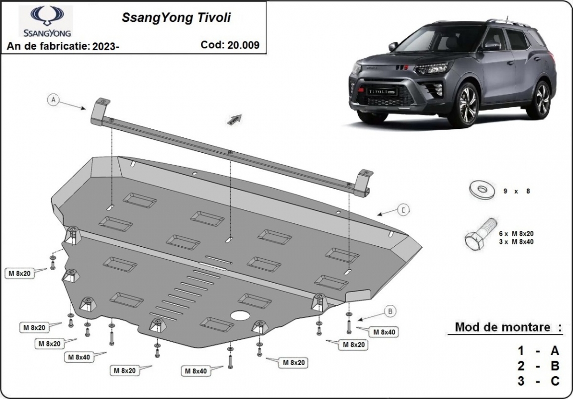 Piastra paramotore di acciaio SsangYong Tivoli (2023-2026)