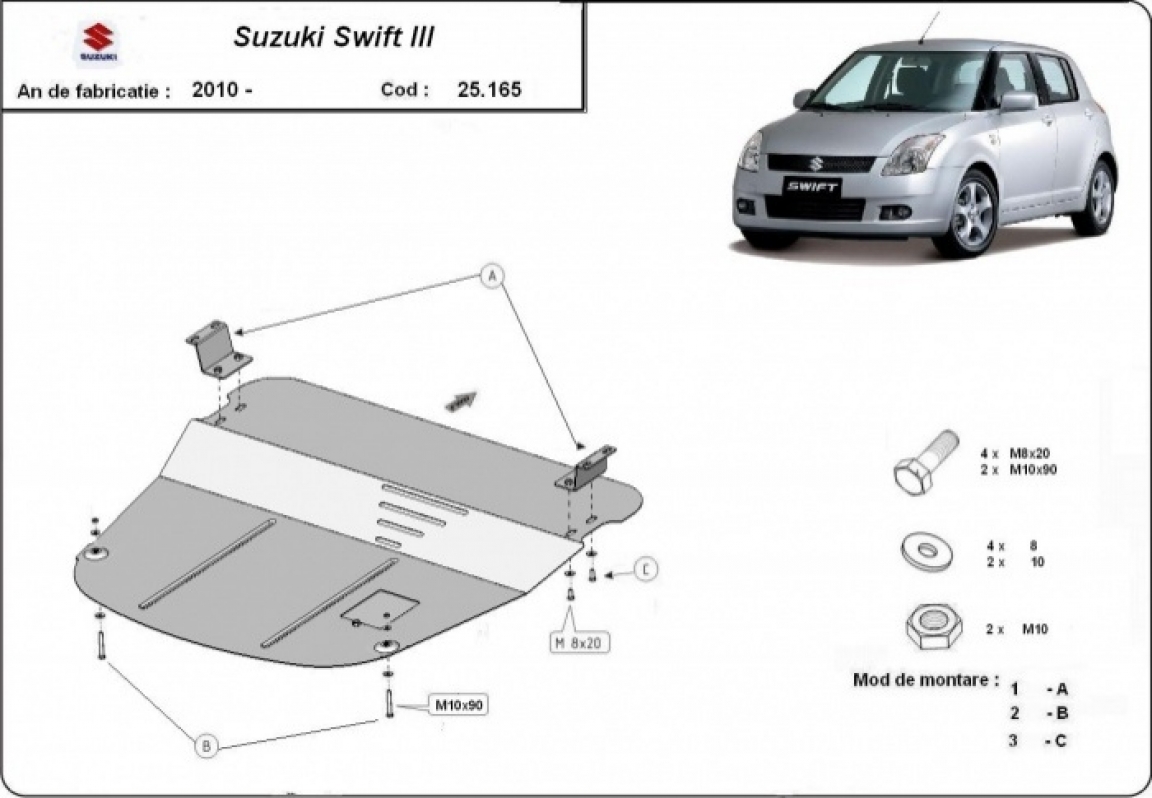 Piastra paramotore di acciaio Suzuki Swift 3 (2010-2017)