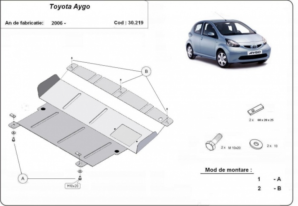 Piastra paramotore di acciaio Toyota Aygo AB10 (2005-2014)