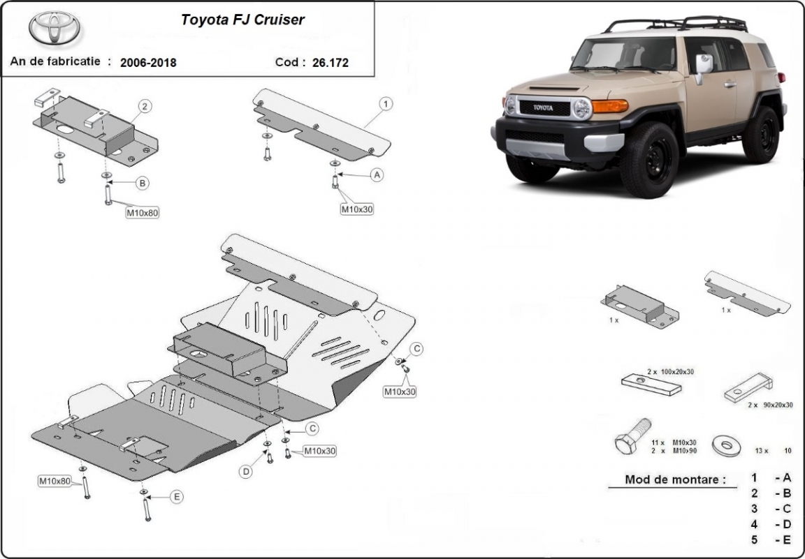 La piastra paramotore di Acciaio è nuova e si adatta perfettamente a tutte le versioni di Toyota Fj Cruiser prodotte tra il 2006 e il 2018. É fatto di lamiera d'Acciaio di 2.5mm. Bulloni, dadi, rondelle e tutti gli accessori allegati Ogni piastra è resistente alla corrosione ed è ricoperto di vernice in polvere. Le piastre di protezione del motore sono attrezzati di coppie saldate per la miglior resistenza alle forze exteriori. |