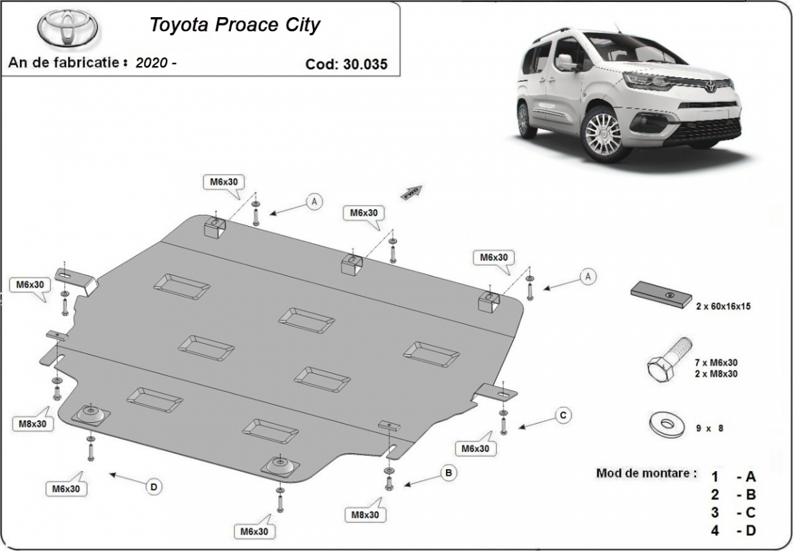 La piastra paramotore di Acciaio è nuova e si adatta perfettamente alla Toyota Proace City, con le seguenti versioni motore / trazione: - prodotte tra il 2020 e il 2026. É fatto di lamiera d'Acciaio di 2mm. Bulloni, dadi, rondelle e tutti gli accessori allegati Ogni piastra è resistente alla corrosione ed è ricoperto di vernice in polvere. Le piastre di protezione del motore sono attrezzati di coppie saldate per la miglior resistenza alle forze exteriori. |