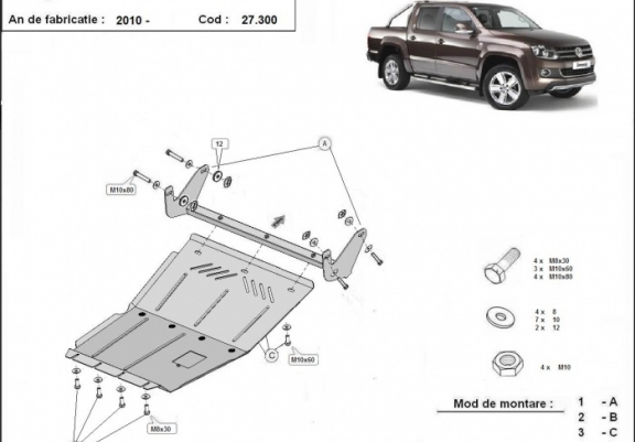 Piastra paramotore di acciaio Volkswagen Amarok (2010-2022)