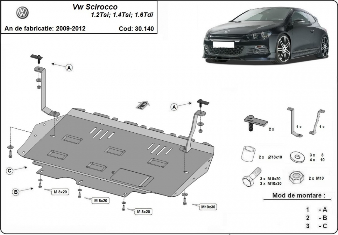 Piastra paramotore di acciaio Volkswagen Scirocco (2008-2017)