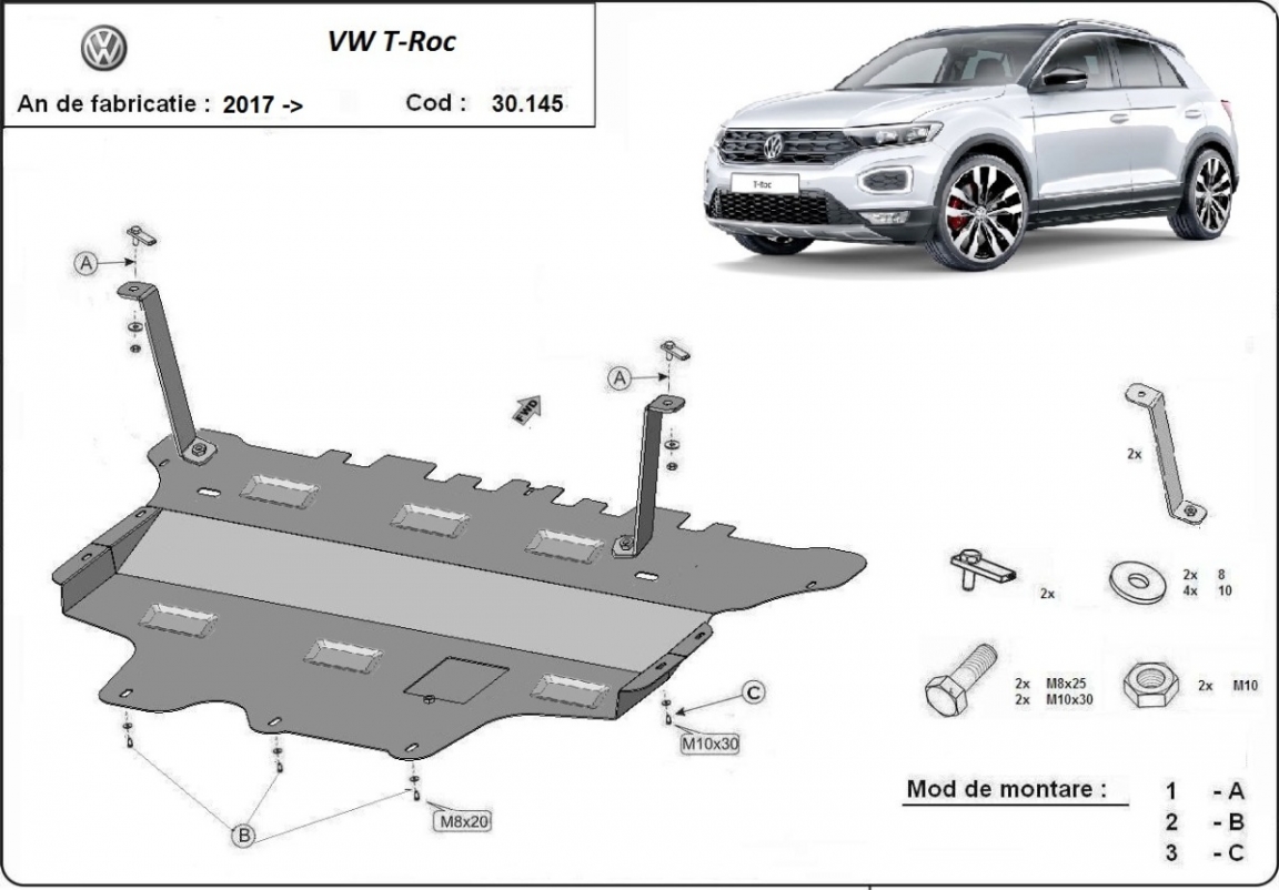 Piastra paramotore di acciaio Volkswagen T-Roc - cambio manuale