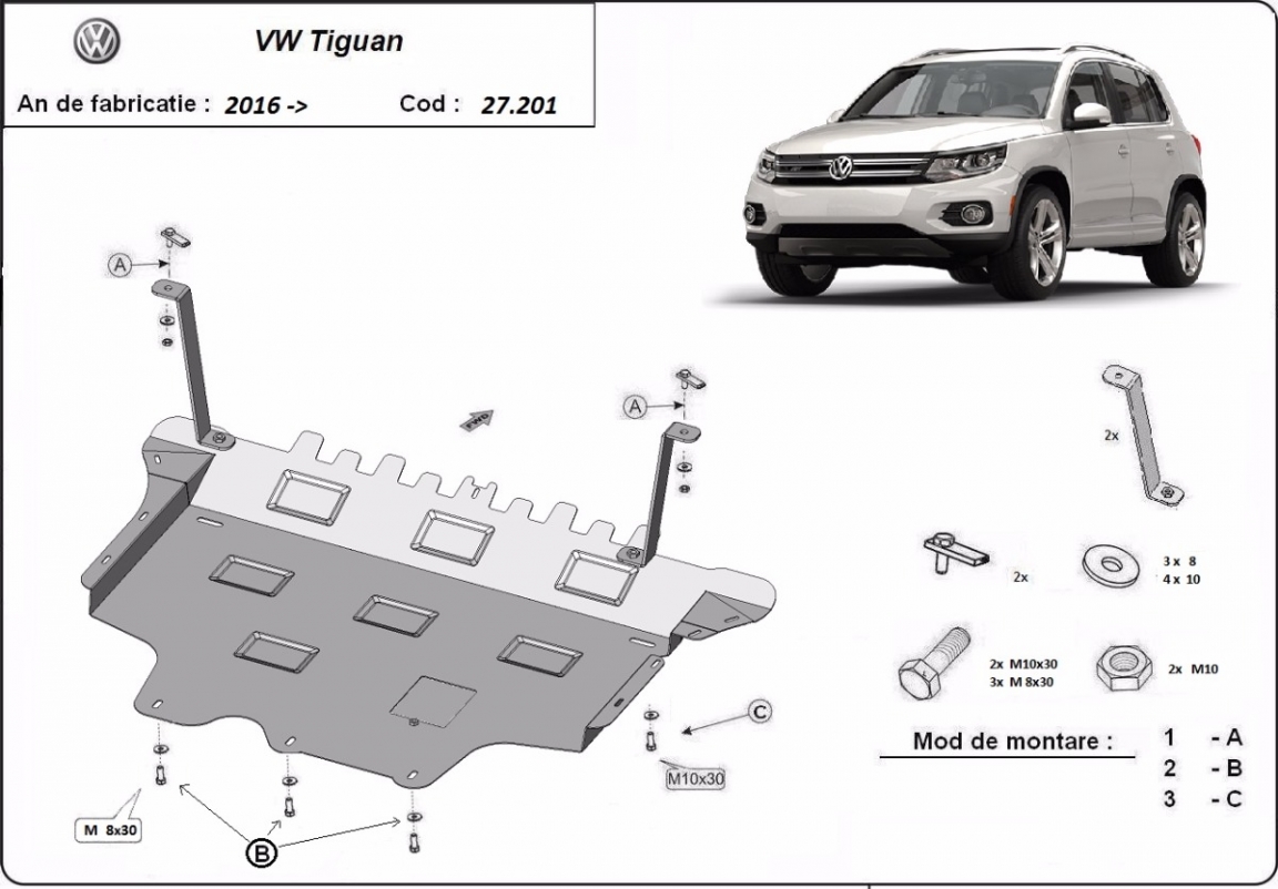Piastra paramotore di acciaio VW Tiguan