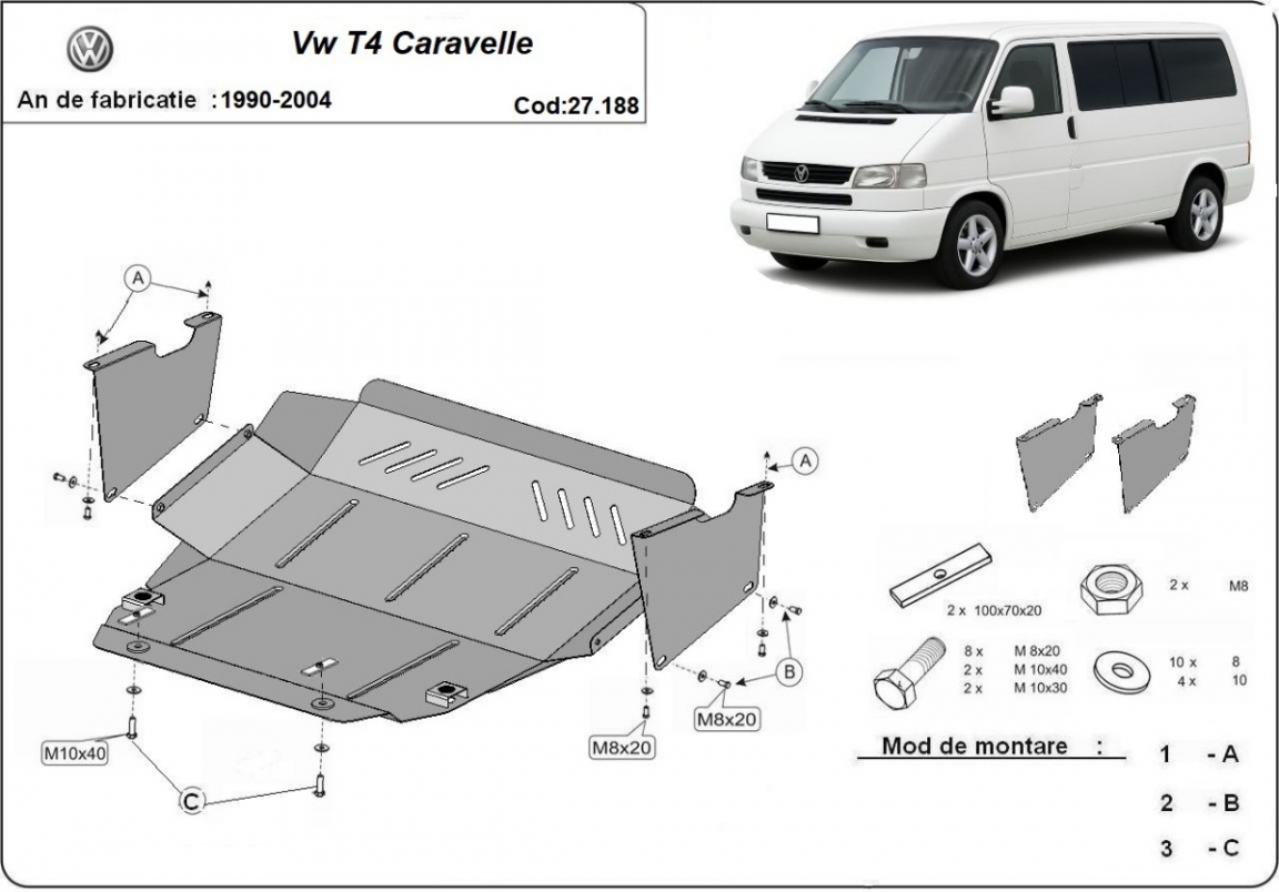 Piastra paramotore di acciaio VW Transporter T4 Caravelle (1990-2003)