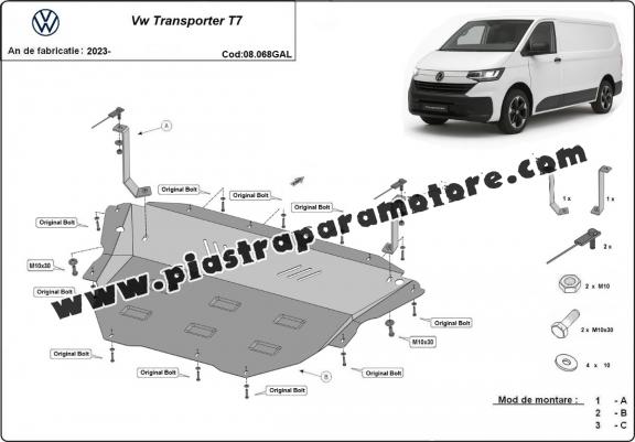 Piastra paramotore di acciaio zincato Volkswagen Transporter T7 (2023-2026)