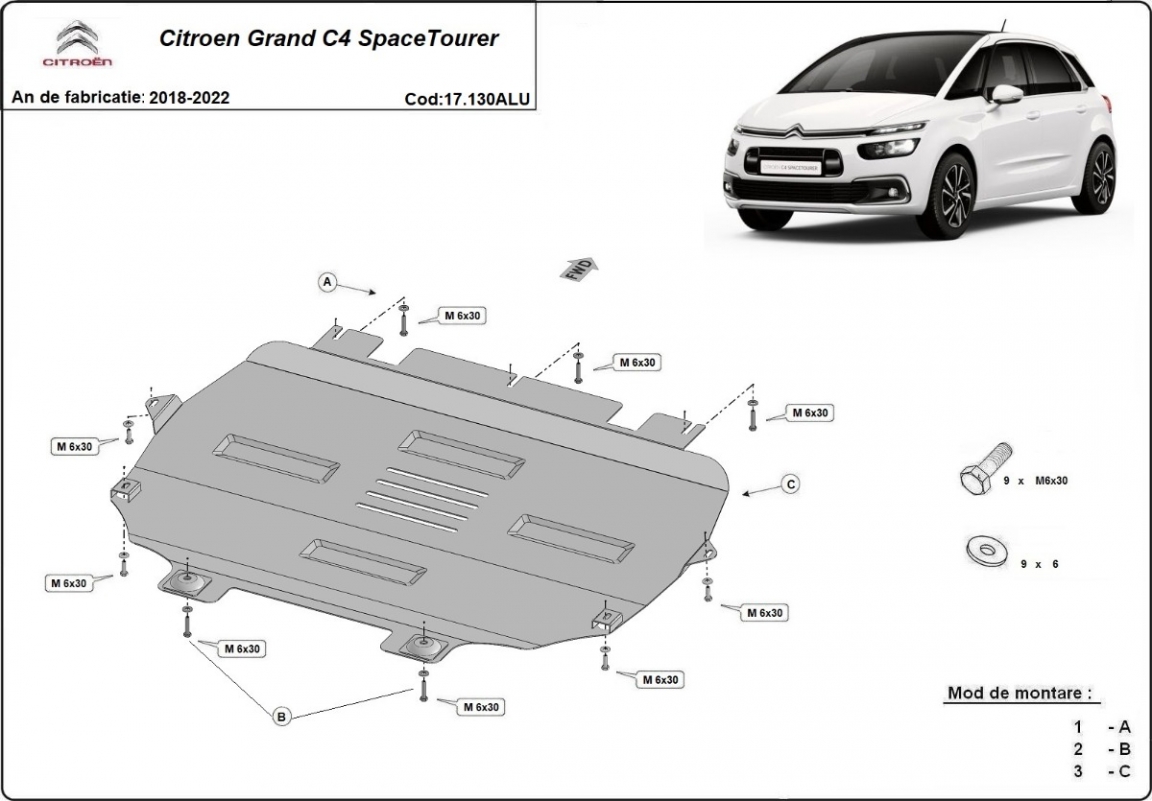 La piastra paramotore di Alluminio è nuova e si adatta perfettamente a tutte le versioni di Citroen Grand C4 SpaceTourer prodotte tra il 2018 e il 2022. É fatto di lamiera d'Alluminio di 3mm. Gli scudi sono in alluminio, ma i supporti di fissaggio sono in acciaio. Bulloni, dadi, rondelle e tutti gli accessori allegati Ogni piastra è resistente alla corrosione ed è ricoperto di vernice in polvere. Le piastre di protezione del motore sono attrezzati di coppie saldate per la miglior resistenza alle forze exteriori. |