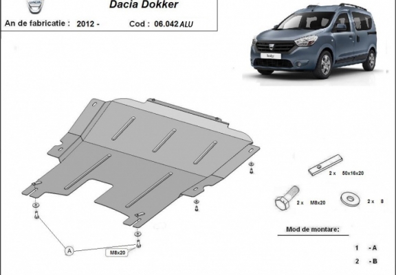 Piastra paramotore di alluminio Dacia Dokker (2012-2026)