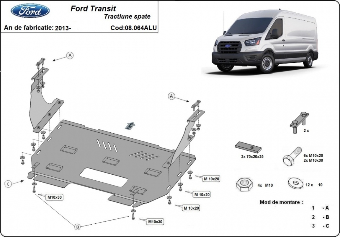 Piastra paramotore di alluminio Ford Transit RWD (2013-2026)