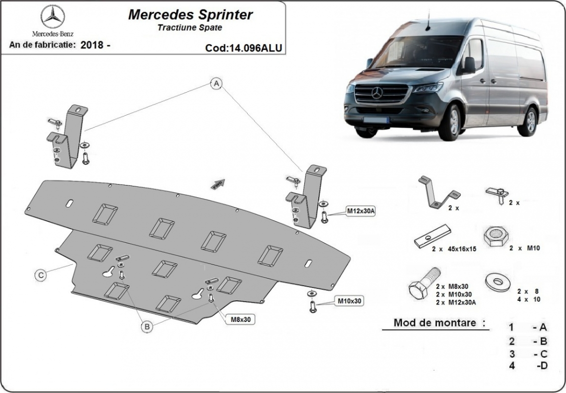 La piastra paramotore di Alluminio è nuova e si adatta perfettamente a tutte le versioni di Mercedes Sprinter - RWD prodotte tra il 2018 e il 2026. É fatto di lamiera d'Alluminio di 3mm. Gli scudi sono in alluminio, ma i supporti di fissaggio sono in acciaio. Bulloni, dadi, rondelle e tutti gli accessori allegati Ogni piastra è resistente alla corrosione ed è ricoperto di vernice in polvere. Le piastre di protezione del motore sono attrezzati di coppie saldate per la miglior resistenza alle forze exteriori. |